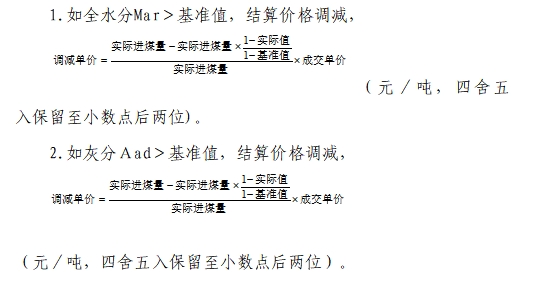 每日全部來煤為一個批次,該批次的所有子樣化驗結果加權平均值作為該批次煤的質量指標,自然月或執行期所有批次質量指標的加權平均值作為結算依據。各煤種質量考核包括熱值、硫分、水分、灰分考核。具體條款內容如下: