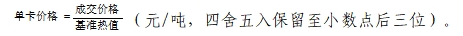 1.如Qnet,ar≥基準值,以基準值為基礎,每升高1千卡/千克,結算價格調增單卡價格1.0倍。